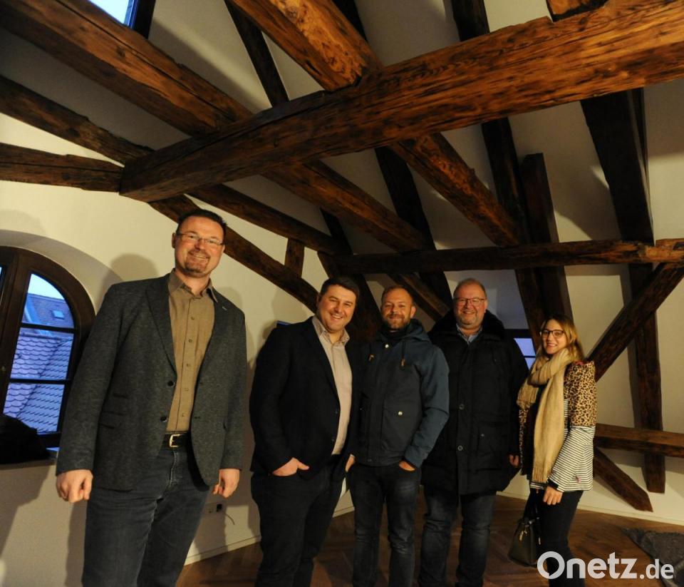 Manfred Braun, der den dahinterliegenden Neubau errichtet hat, meinte, es sei "sehr eng" zugegangen und die Bodenverdichtung musste rüttelfrei erfolgen, damit umliegende Gebäude nicht gefährdet wurden. Zur Stabilität des Gebäudes seien fast 500 Kubikmeter Beton eingebracht worden. "Wir haben jetzt zwölf Wohnungen mit Größen zwischen 36 und 129 Quadratmetern gebaut, auch ein kaltes Treppenhaus, damit im Brandfall der Rauch schnell abziehen kann", so Wittl. In den Dachgeschoßwohnungen wurden die alten Balken erhalten, aber zur Sicherung des gesamten Gebäudes Stahlträger und Stützen eingebaut. Alle Zwischendecken liegen auf einer massiven Stahlkonstruktion. CSU-Stadtrat Daniel Müller informierte kurz darüber, wie in der Amberger Altstadt allgemein Hauseigentümer bei der Sanierung ihrer alten Häuser gefördert werden können.