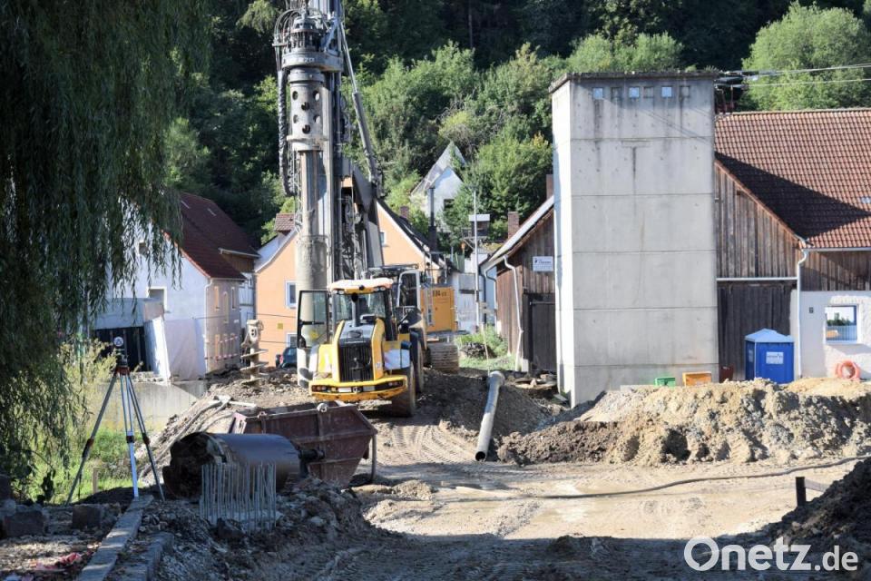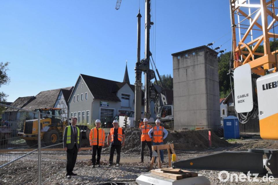 Wie Projektleiter Alexander Frais bei einem Treffen an der Baustelle bekanntgab, liegen die Arbeiten an dem 1,5 Millionen teuren Projekt gut im Zeitplan. Bereits Ende Juli hatte man damit begonnen, die alte Brücke abzubrechen und das Wasser der Lauterach in große, ins Flussbett verlegte Stahlrohre zu leiten. Derzeit wird die Gründung der neuen Brücke hergestellt. Die Bohrpfähle mit einem Durchmesser von knapp einem Meter werden dabei bis zum Felshorizont in etwa sieben Meter Tiefe in den Boden getrieben und betoniert.