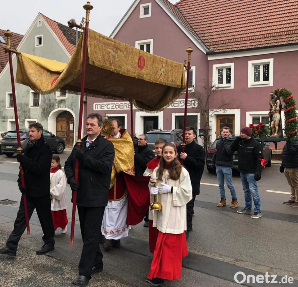 Weder dafroan, noch dasuffa oder eingeschneit war heuer die Figur des Heiligen Sebastian, der in feierlicher Prozession durch den Markt getragen wurde. Der Umzug zu Ehren des Pestheiligen ist eines der großen Kirchenfeste in der Lauterachpfarrei Hohenburg. Dazu gehört auch weltliches Brauchtum - was aber, wenn es kaum mehr Wirtshäuser gibt?