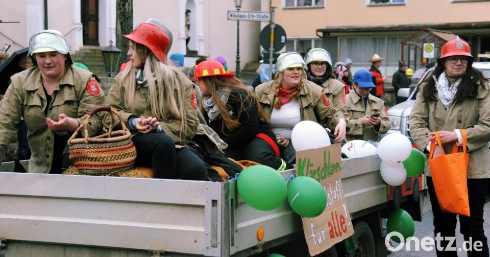In der uralten Kutsche kuschelten sich Seine Tollität Kinderprinz Ludwig I. und Ihre Lieblichkeit Emma I. zusammen, während sich draußen die Garde tanzend warmhielt. Dass die Brücke über die Lauterach nicht mehr lange hält, wurde auf einem Motivwagen prophezeit. Die Hohenburger planen deshalb schon mal eine Fähre, die den Verkehr übers Wasser bringt. In Hohenburg hängen an Weihnachten am Christbaum vor dem Rathaus glitzernde Kugeln, für Ostern ist der Osterschmuck vorgesehen. Und die Narren dekorierten ihn dazwischen zum Faschingsbaum um, während ein fast nadelloses Prunkstück einen Prunkwagen zierte. Die künftigen Feuerwehrfestdamen besetzten ihren Klärschlamm, während die Hohenburger Marktweiber mit reichlich Grünzeug für ihren Marktladen Werbung machten.
