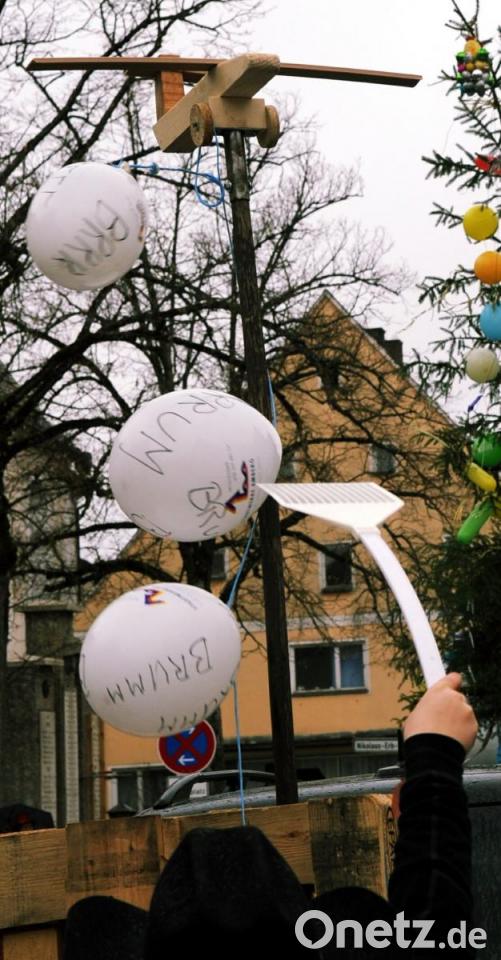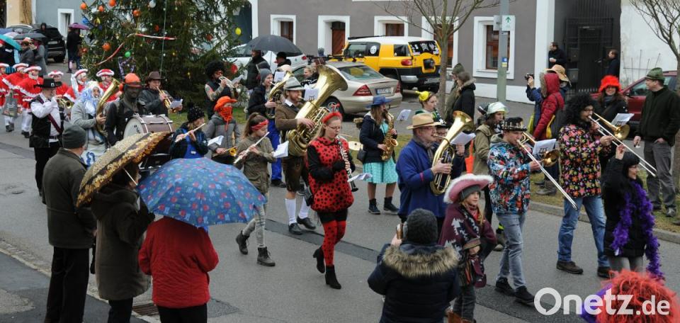Die Narren zogen durch den Markt, holten dabei die lauten US-Drohnen mit der Fliegenklatsche vom Himmel oder planten schon einmal eine Lauterach-Fähre. Bunt zusammengewürfelt waren die "Wilden Willigen Spieler", aber ihnen gelang es, den richtigen Marschtakt für den Hohenburger Faschingszug vorzugeben.