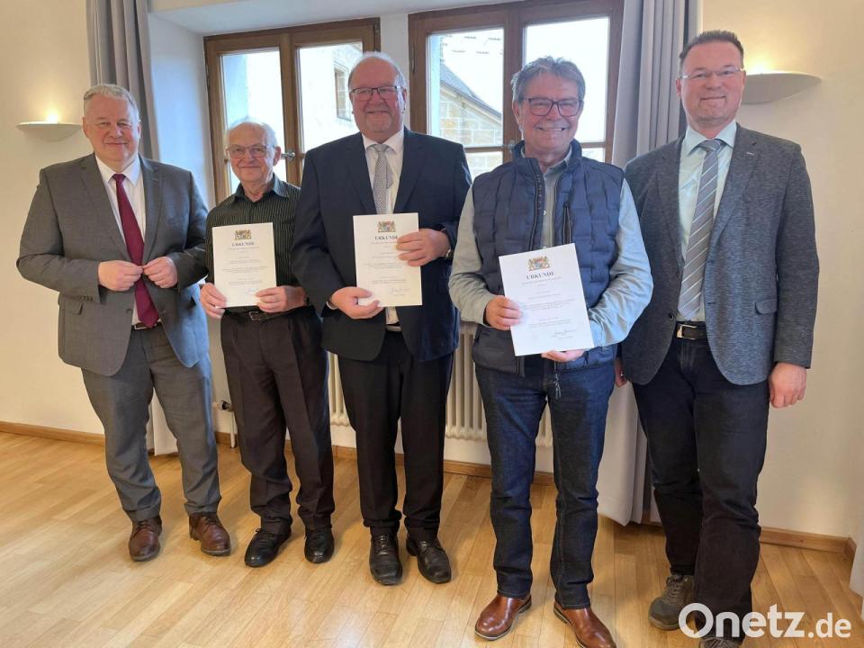 Für ihre Dienste und ihr Engagement wurden drei verdiente Kommunalpolitiker aus Hohenburg im Landratsamt Amberg-Sulzbach mit der Kommunalen Dankurkunde ausgezeichnet. Landrat Richard Reisinger überreichte die Urkunden im Auftrag des Bayerischen Innenministers Joachim Herrmann an Georg Reis, Alois Siegert und Manfred Braun, heißt es in einer Pressemitteilung des Landratsamtes Amberg-Sulzbach. "Diese Ehrung würdigt Ihr langjähriges Engagement in der Kommunalpolitik", betonte Reisinger. „Sie können auf das Geleistete stolz sein. Gerade bei den gestiegenen Ansprüchen der Bürgerinnen und Bürger braucht man in der Politik Resilienz, ein breites Kreuz“, fuhr der Landrat fort.
