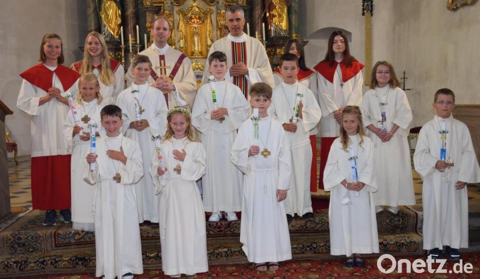 Unter dem Motto „Wir sind Gottes Melodie“ feierten zehn Kinder aus der Pfarreiengemeinschaft im Lauterachtal Erstkommunion in der Pfarrkirche St. Jakobus Hohenburg. Den Festgottesdienst gestaltete die Musikgruppe Viva la Lieda. Für die Vorbereitung der Feier engagierten sich Renate Gradl, Gabriele Jung und Manuela Wittl. Wie Pfarrer Hans-Jürgen Zeitler sagte, haben die Mädchen und Buben viele Wochen auf ihren großen Tag hingearbeitet. Sie hätten viele Erzählungen aus der Heiligen Schrift kennengelernt. Gemäß dem Motto der Feier sollten die Erstkommunionkinder wie verschiedenen Pfeifen einer Orgel zusammen wirken und zusammen klingen, sagte Zeitler. Der Geistliche bat die Eltern und Paten, ihren anvertrauten Kindern im Leben, in der Gemeinschaft und im Glauben zur Seite zu stehen. "Betet in der Familie, sprecht über Themen des Glaubens, haltet den Sonntag und den Gottesdienstbesuch in Ehren und denkt dabei auch an den Sakramenten-Empfang", appellierte er. So verfestige sich Gottes Melodie immer mehr und werde zum sicheren Halt auf den Wegen durchs Leben. Ko-Zelebrant war Pfarrer Michael Alberter.
