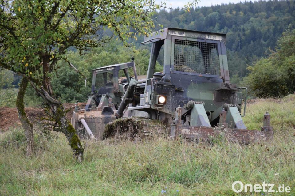 Pioniere sind dort im freien Gelände mit mehreren schweren Planierraupen dabei, versetzt Panzergräben aufzuschieben und Sperren zu sichern. Sie sind gut einen Kilometer von Matzhausen entfernt. Damit machen sie ein Vordringen der angreifenden Panzer- und Infanterieverbände unmöglich.