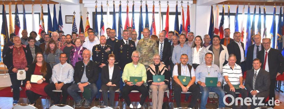 Einen festlichen Rahmen verliehen der Mitarbeiterehrung für zivile Mitarbeiter der US Army die Flaggen der 50 amerikanischen Bundesstaaten, dazu die deutsche und amerikanische Fahne. Die Dankurkunden an die zivilen Arbeitsjubilare überreichte der Kommandeur der Garrison Bavaria, Oberst Adam J. Boyd aus Grafenwöhr, zusammen mit Garrison Manager Michael Mathews, den Bürgermeistern der Truppenübungsplatz-Randgemeinden und weiteren Militärs im Hill-Top-Club in Hohenfels.