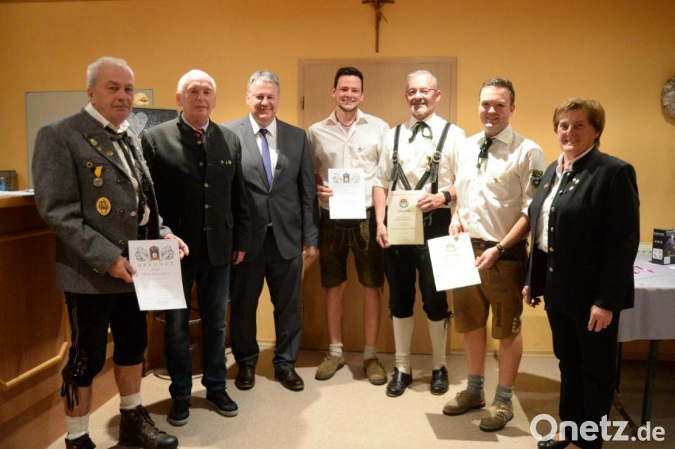 Besondere Ehrungen gab es dann für die Mannschaft um Schützenmeister Hans Wenkmann, die Mitglieder hatten sich in den Monaten des Umbaus besonders engagiert. Hans Wenkmann und Timo Schuler bekamen als Anerkennung die goldene Verdienstnadel des Deutschen Schützenbunds verleihen, Hermann Schmidt die Verdienstauszeichnung am Band, Gerhard Herbst und Johannes Wenkmann die Verdienstauszeichnung des Oberpfälzer Schützenbunds.