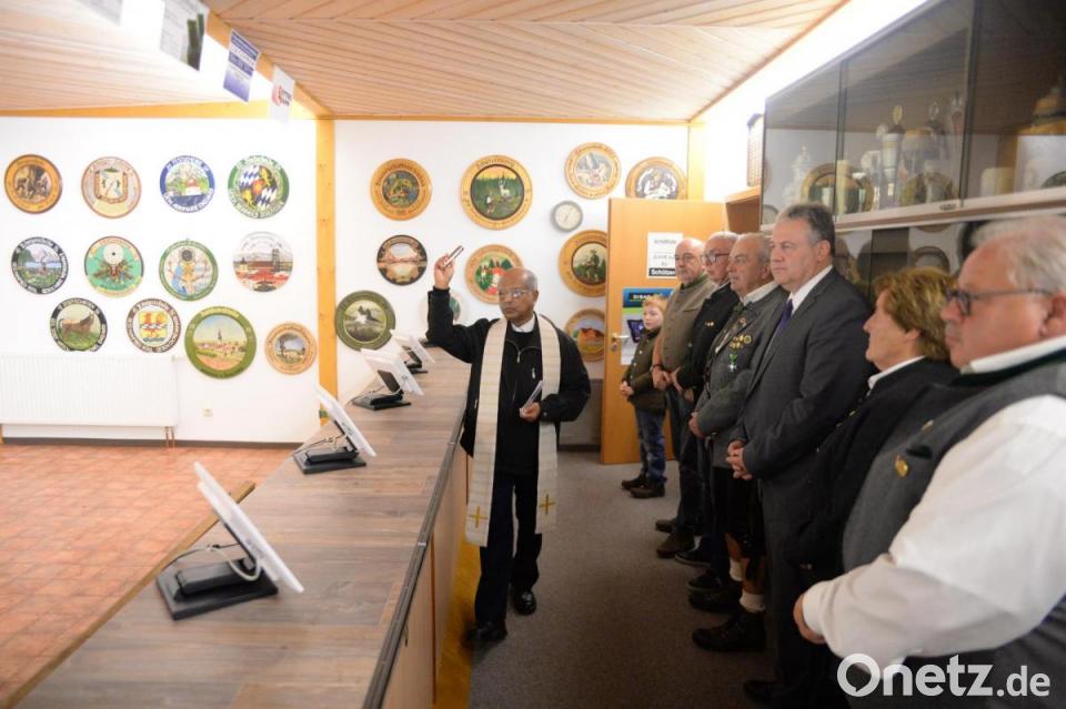 „Nachdem im März der Beschluss über die Vergabe des Anbieters für die Elektronik am Schießstand vergeben wurde, freut es mich heute sehr, diesen zusammen mit Pfarrer Joseph einweihen zu dürfen“, sagte Wenkmann eingangs der Einweihung, die im Rahmen des Weinfestes der Schützengesellschaft stattfand. Dazu hatte sich neben Gauschützenmeister Heinrich Fraunholz und der Vizepräsidentin des Oberpfälzer Schützenbunds, Herta Zeiler, auch Landrat Richard Reisinger eingefunden.