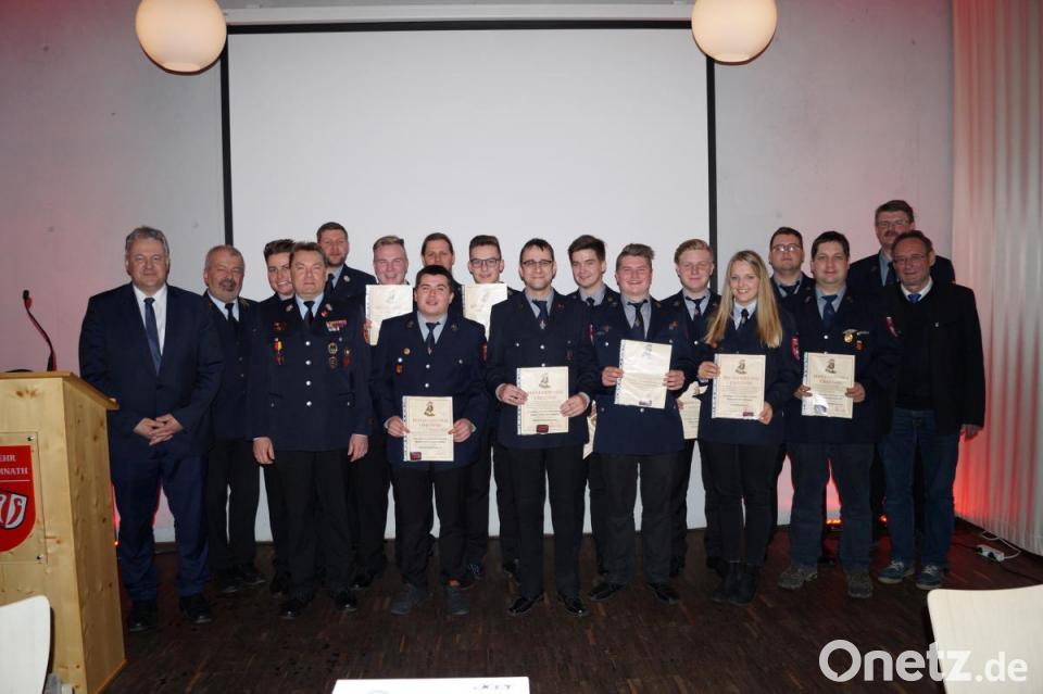 Zu Feuerwehrmann oder - frau wurden befördert: Johanna Wiesner, Nico Dzalakowski, Jannik Knauer, Manuel Nitzbon, Thomas Gebhardt, Michael Stiegler, Stefan Hierold und Tobias Hierold. Oberfeuerwehrmann sind nun Thomas Kugler, Pascal Dzalakowski, Georg Hellebrand, Patrick Förster und Tobias Richthammer. Zum Hauptfeuerwehrmann wurde Bernd Stiegler, zum Löschmeister Michael Dengler ernannt.