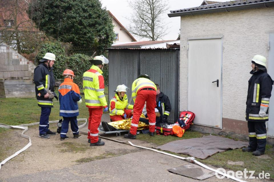 In den Räumen der Bäckerei Wenkmann üben die Feuerwehr Hohenkemnath und die Helfer vor Ort Ursensollen. Die Übungsalarmierung lautete „Mehlstaubexplosion“.