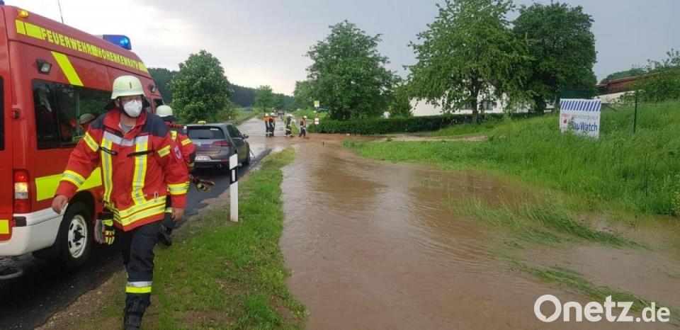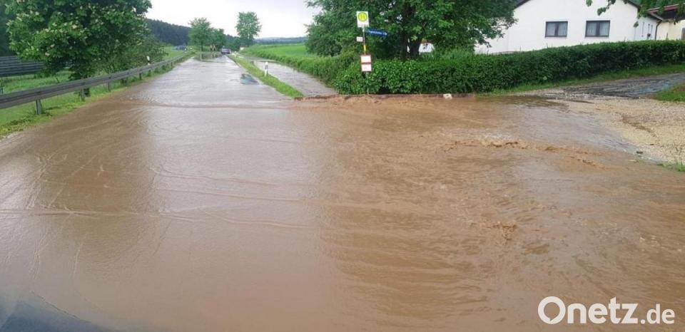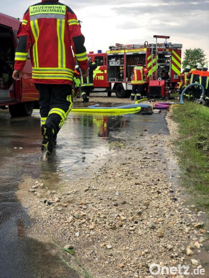 In der Ortschaft Eigentshofen konnte nach einem heftigen Starkregen eine abschüssige Wiese das Wasser nicht mehr aufnehmen, weshalb eine schlammige Brühe in Form einer Flutwelle unkontrolliert ablief. Dabei wurden die komplette untere Etage eines Einfamilienhauses sowie Teile der Kreisstraße AS 28 geflutet. Die Familie wählte in ihrer Not die 112. Alarmiert wurde die zuständige Feuerwehr Garsdorf sowie zur Unterstützung die besser ausgestattete Feuerwehr aus Hohenkemnath.
