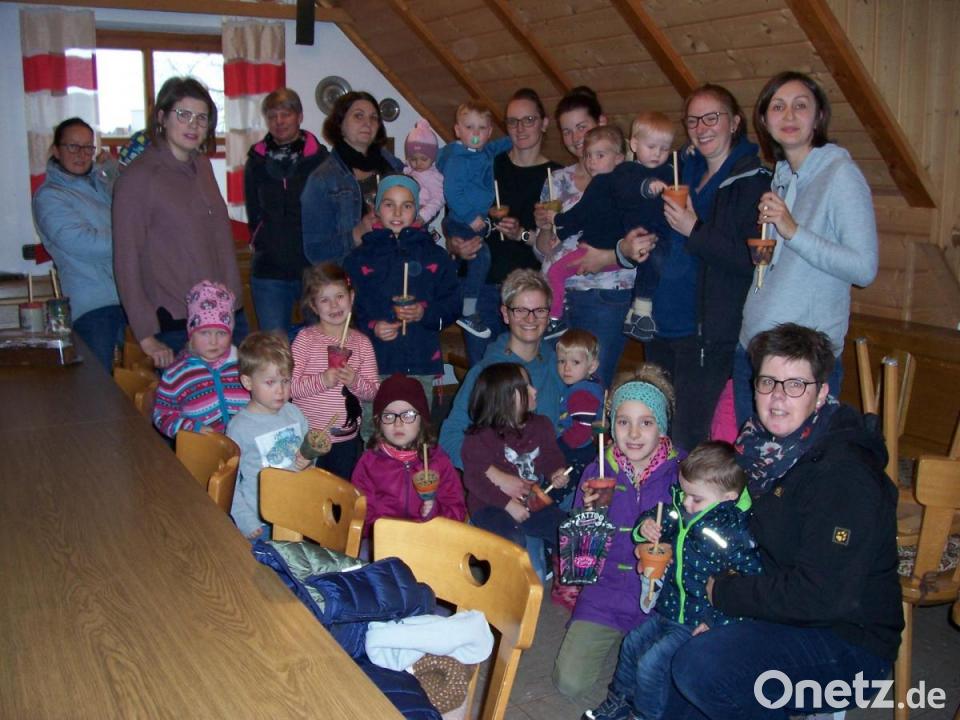 Vor Kurzen bastelten die Mädchen und Buben der "Haouadraunser Frichterler", wie sich die Gruppe nennt, unter Anleitung der Mütter eine Futterglocke für die Winterfütterung der Vögel. Hier wurde auch gleich die Preisverleihung des Sonnenblumenwettbewerbs vorgenommen. Nadine Maier übergab an jedes der 20 Kinder ein kleines Präsent für die Teilnahme.