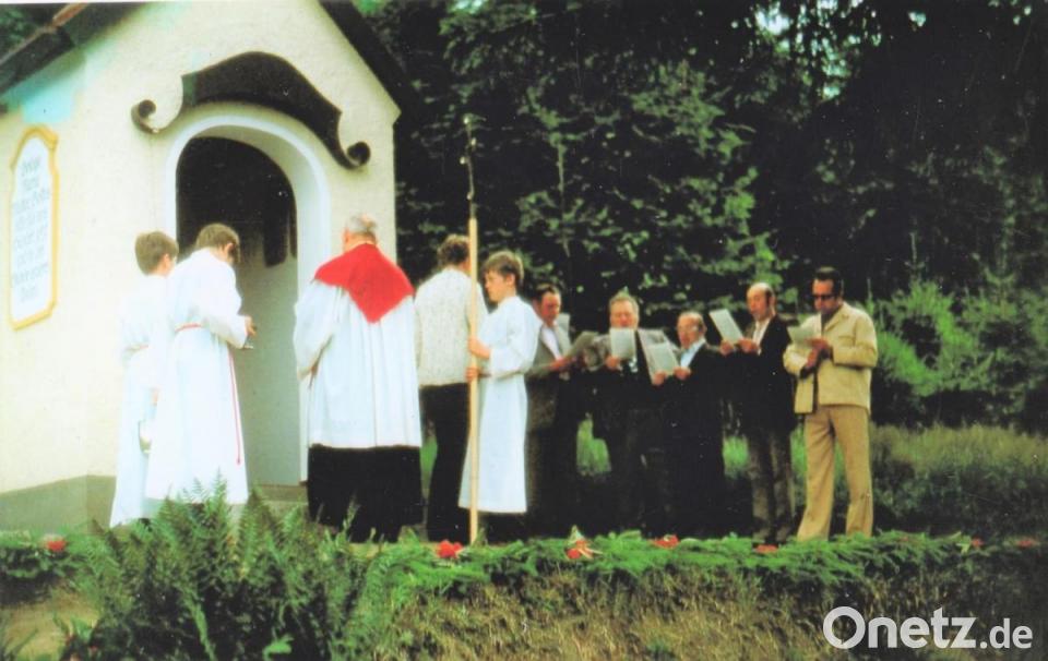 Binnen eines Jahres hatte er das kleine Gotteshaus, das der Schmerzhaften Muttergottes gewidmet ist, vollkommen in Eigenregie errichtet. Am Sonntag, 15. Juli 1979, wurde die Gedächtniskapelle bei Kaiserwetter und in Anwesenheit von zahlreichen Gläubigen vom damaligen Stadtpfarrer Dekan P. Andreas Pfeiffer (1915 bis 1999) gesegnet.