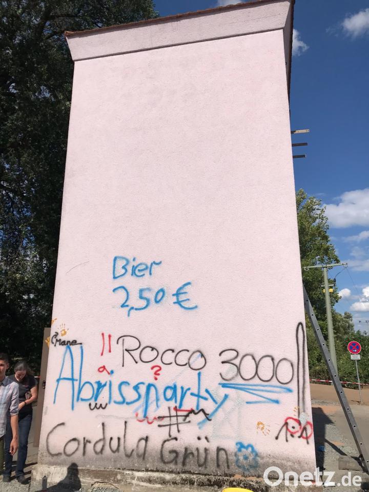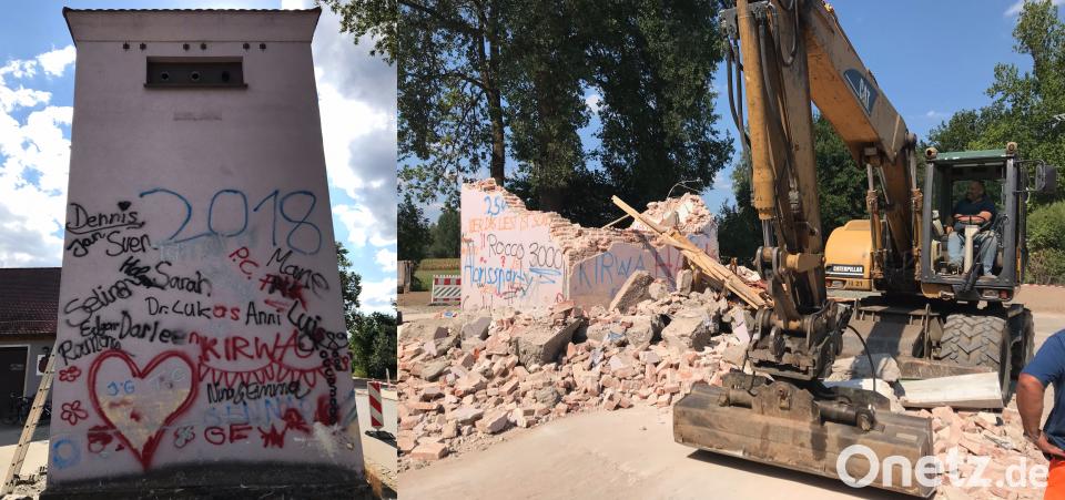 Zur Hüttener Kirwa organisierte der Bürgermeister dann den Schlüssel zur Station – denn eine ordentliche Abrissparty musste für das seit den 1950er Jahren stehende Häuschen sein. Mit Durchlaufkühler und Zapfanlage verabschiedeten die Kirwaburschen und -mädels das Gebäude. Der Abriss erfolgte kürzlich durch Baptist Wächter. Künftig steht an der Stelle eine Grüninsel, auf dem das Logo der Feuerwehr Hütten in einer noch zu bestimmenden Weise verewigt sein wird.