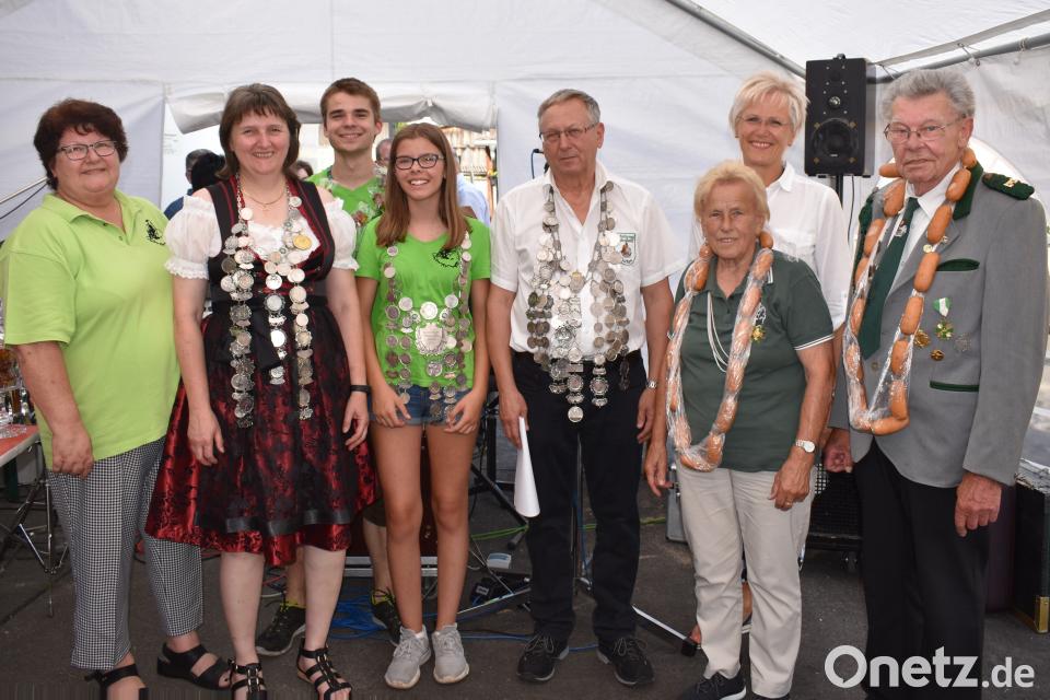 "Der Schützenkönig ist wieder ein Grafenwöhrer", freute sich Hans Biersack, nachdem ihm zweite Bürgermeisterin Anita Stauber die Königskette für seinen 43,5-Teiler umgelegt hatte. Herbert Friedrich erhielt als Vizekönig eine Wurstkette. Dritter wurde Rudolf Prölß. Mit Ulla Zintl gibt es heuer eine neue Schützenliesl, Vizeliesl wurde Anni Stümpfl, Dritte Sandra Schneider. Als Jugendkönigin wurde Sarah Schönberger gefeiert. Vizekönig ist Benedict Schmidt, Emilia Schmidt wurde Dritte.