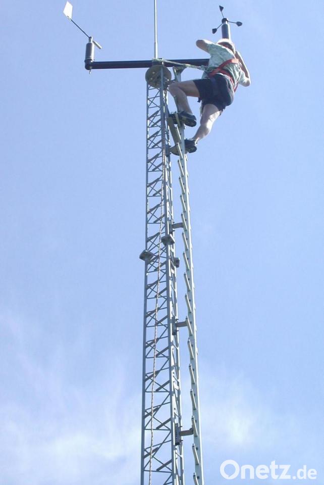 In einem alten Schullesebuch steht die Geschichte von Leuten, die das Wetter einmal selber machten, weil Gott es bislang keinem recht tun konnte. Als die Erntezeit kam, war das Getreide zwar reif, die Ähren aber leer: Die Wettermacher hatten den Wind vergessen. Welch große Bedeutung der Wind bzw. seine Daten für die Arbeit des Deutschen Wetterdienstes hat, wurde vor Kurzem wieder einmal an der seit 1990 in Hüttstadl bestehenden Klimastation, eine der am besten bestückten in ganz Bayern, demonstriert: Windstärke und -richtung wurden hier zwar schon seit 20 Jahren per Kassette aufgezeichnet und ausgewertet. Später wurde die Anlage durch einen Windturm ersetzt, der mit einem hochsensiblen Ultraschall-Sensor ausgestattet ist. Dadurch kann der Deutsche Wetterdienst per Datenleitung nicht nur die Lufttemperatur in fünf Zentimetern und zwei Metern über dem Erdboden, die Luftfeuchte und die Niederschlagsmenge, sondern auch Stärke und Windrichtung abrufen. Auch basieren Unwetterwarnungen unter anderem auf den Winddaten, die aus dem Wetter-Radarsystem ermittelt werden. Alle drei Jahre wird der Sensor, der Richtung und Geschwindigkeit misst, ausgetauscht und in einem „Windkanal“, wie Torsten Müller vom Deutschen Wetterdienst informiert, überprüft. Dazu wird der 15 Meter hohe Windturm umgelegt. In früheren Jahren musste ein Techniker, angeseilt und im Schutzanzug, für Wartungen und Reparaturen auf den Turm steigen.