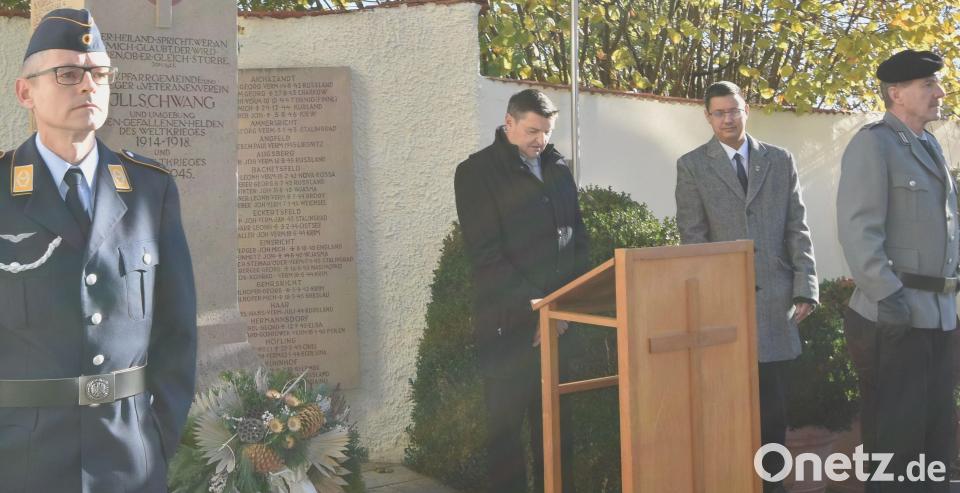 Durchsetzung des Willens mit Gewalt, Nutzung von Angst statt Argumenten, Ersatz der Ehrfurcht vor dem Leben durch die Anbetung einer Ideologie sowie Tote statt Leben seien Punkte, die Herrscher für die Rechtfertigung von Kriegen nutzen würden. Dies betonte der Zweite Bürgermeister der Gemeinde Illschwang, Benjamin Hiltl, bei seiner Ansprache zur Feier des Volkstrauertags. Er erinnerte daran, dass vor genau 100 Jahren ein Gedenktag für die Toten des Ersten Weltkriegs stattfand. Hiltl stellte die Frage, was sich eigentlich bis heute geändert habe. Gleich geblieben sei die Tatsache, dass Verantwortliche von Kriegen selten zur Rechenschaft gezogen werden. Das Innehalten sah er am Volkstrauertag sehr wichtig an, um den Menschen vor Augen zu führen, wie sich unsere Welt ein Jahrhundert nach den Schüssen im ersten Weltkrieg darstellt. Als Beispiele für den Unfrieden nannte Hiltl den Krieg in der Ukraine, der seit Jahren anhaltende Bürgerkrieg in Syrien, sowie die militärischen Eskalationen im Gazastreifen. Hiltl: "Die Zahl der Opfer ist unüberschaubar. Jeder einzelne Tote hate eine Familie, die um ihn trauert." Dieser persönliche Schmerz mache uns die Tragweite dieser Gedenkfeier bewusst. "Auch wenn Deutschland nicht aktuell an der Front kämpft, spüren wir gegenwärtig alle die Auswirkungen des Wirtschaftskriegs", machte Hiltl deutlich.
