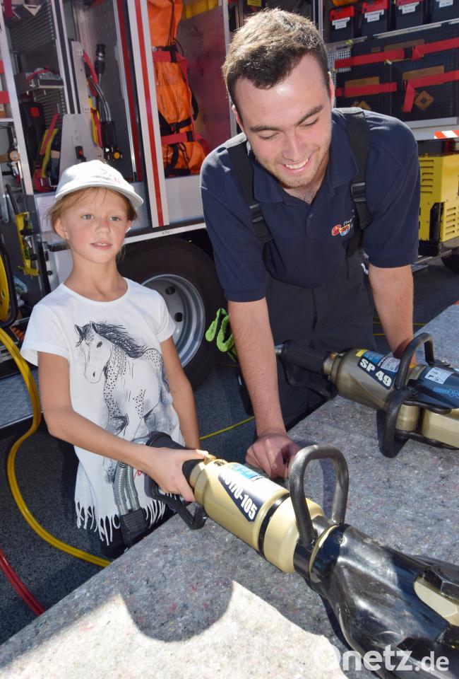 Bei der Feuerwehr Dietersberg ging es um das Löschen eines Brandhauses. Den Umgang mit Rettungsschere und Spreizer probierten die Kinder bei den Gastgebern aus. Auch die Fahrten mit einem Feuerwehrfahrzeug übernahm die Stützpunktfeuerwehr Illschwang. Um das Fühlen und Ertasten von typischen Gegenständen, ohne diese zu sehen, ging es am Stand der Augsberger. Schließlich versuchten sich die Teilnehmer bei der Wehr Angfeld am Auswerfen von Wasserschläuchen. Für die Jüngsten gab es auch noch die Möglichkeit, sich auf einer Riesenhüpfburg zu vergnügen.