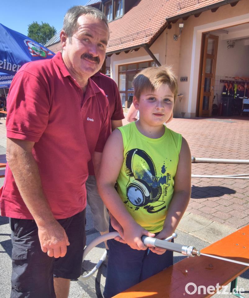 In Verbindung mit dem Hallenfest ihrer Illschwanger Kollegen stellten alle Feuerwehren der Gemeinde ein abwechslungsreiches Angebot im Ferienprogramm auf die Beine. 40 Kinder nahmen an den Aktionen teil; Bürgermeister Dieter Dehling gab ihnen die Laufzettel mit auf den Weg.