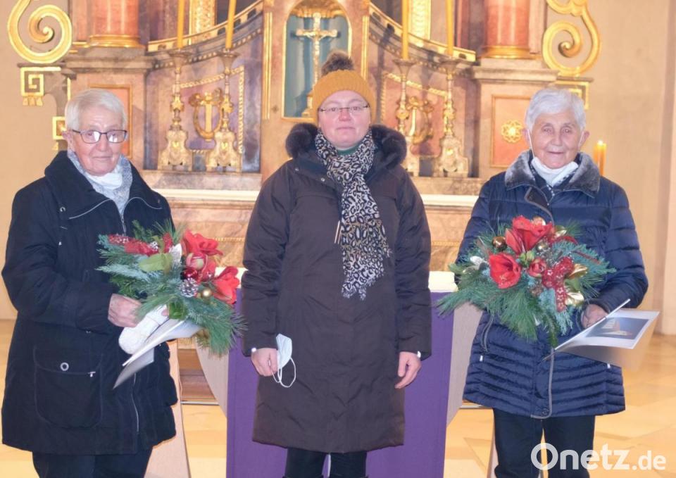 Am Schluss des Gottesdienstes in der evangelischen Kirchengemeinde Illschwang am ersten Adventssonntag wurden zwei langjährige Sängerinnen des evangelischen Kirchenchors offiziell verabschiedet. 58 Jahre war Anni Loos dabei, auf 41 Jahre Zugehörigkeit kann Rosa Meyer zurückblicken. Pfarrer Thomas Schertel und Chorleiterin Julia Schmidt lobten das große Engagement, das beide als aktive Sängerinnen geleistet hatten. Als Dankeschön gab es eine Urkunde, sowie vom Kirchenvorstand einen Blumenstrauß. Pfarrer Schertel nutzte die Gelegenheit, darauf hinzuweisen, dass die Zahl der Sängerinnern und Sänger immer weniger wird. Er machte Werbung für das Mitsingen bei verschiedenen kirchlichen Anlässen.