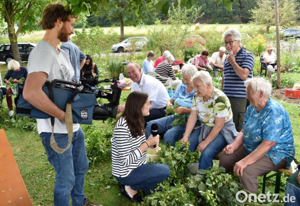 Der Amberger Privatbrauer Arno Diener, von Beginn an für das spezielle Hopfenbier zuständig, gehörte heuer ebenfalls zu den Zupfern. Eine neue Erfahrung, bei dieser Arbeit mitzuhelfen, war es auch für Kreisfachberaterin Michaela Basler und Regina Wolfohr vom Landratsamt, die dort im Bereich Tourismus Ansprechpartnerin ist. Welchen Stellenwert das Einbringen der Hopfenernte inzwischen genießt, zeigte sich auch daran, dass ein Team des regionalen Fernsehsenders OTV authentische Erzählungen zu dieser Tradition für einen längeren Beitrag einfing.