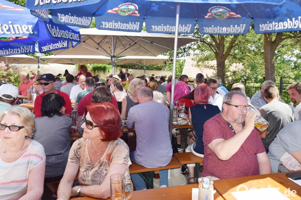 (no) Es ist schon gute Tradition, dass das Weiße Ross in Illschwang an Fronleichnam mit besonderen Schmankerln auf der Speisekarte aufwartet. In diesem Jahr befand sich die Festzone für den Schlemmerfrühschoppen nicht im Innenhof, sondern im Biergarten und am Vorplatz des Landhotels. Wem es unter den Sonnenschirmen noch zu heiß war, fand in den Gasträumen ein passendes Plätzchen. Zum Essen war für jeden Geschmack etwas dabei. Das Spektrum reichte von Ochsenbraten und Kirchweihente über Pfifferlinge in Rahm bis zur Bachforelle vom Holzkohlengrill oder gebratenen Garnelen mit frischen Kräutern. Als Nachspeise standen eine Rhabarber-Quarkschnitte und marinierte Erdbeeren mit Waldmeistereis zur Wahl. Musikalisch verwöhnten die Tanngrindler Musikanten die Gäste. Zur Nachkirwa am Montag startet ab 18 Uhr der Gartenbetrieb mit den Spaltern.