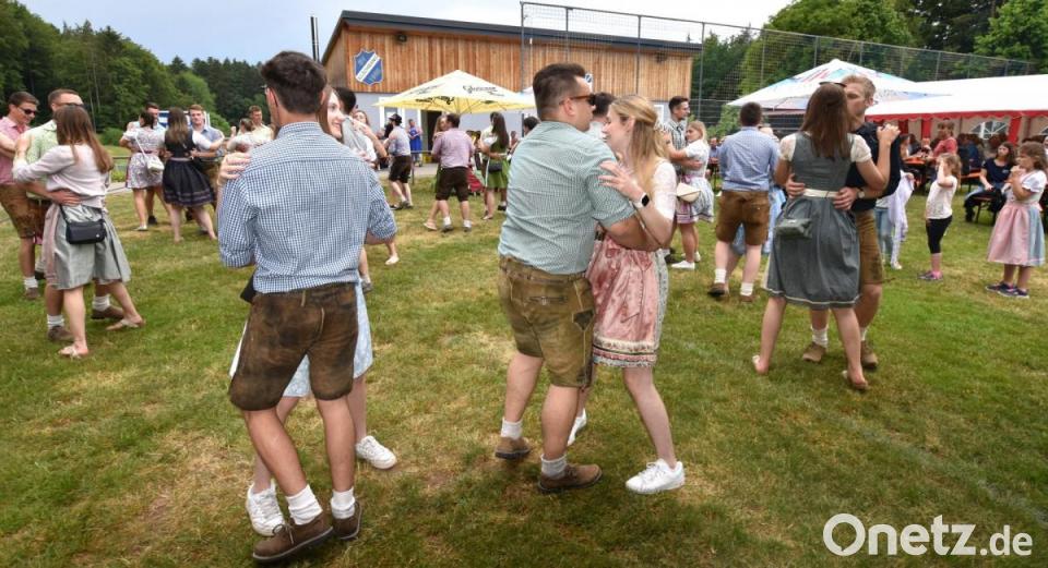 Unter den Gästen waren auch die 24 Kirwapaare, die am Sonntagnachmittag in Illschwang den Baum austanzen werden. Nachdem sie sich im Weißen Ross gestärkt hatten, ging es für sie weiter zum Kirwaauftakt des SV Illschwang auf dem Sportgelände. Musikalisch begleitet von den Birgländer Musikanten, gaben die Kirwapaare Kostproben ihres tänzerischen Repertoires.