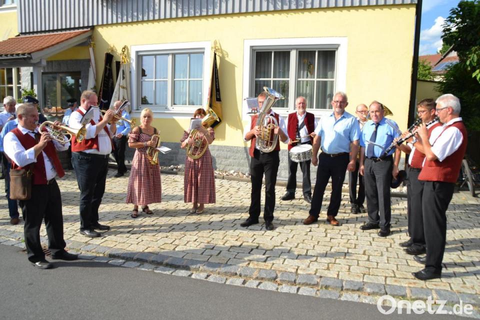 Die Blaskapelle Störnstein unter der Leitung von Andreas Träger begrüßte am Samstag die Teilnehmer der Soldatenwallfahrt nach St. Quirin auf dem Platz vor dem Gasthaus Miedl. Die Soldatenwallfahrt ist alljährlich ein Höhepunkt des Quirinfestes. St. Quirin gilt als Schutzheiliger der Soldaten.