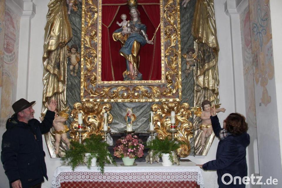 Denn: Gemeinsam mit seiner Ehefrau Gabi und dem Pfarrgemeinderat hat er die Spenden-Aktion "Engel für St. Quirin" ins Leben gerufen. Dabei können die Spender Patenschaften für die Engelsfiguren in der Wallfahrtskirche übernehmen. "Davon gibt es 52 in St. Quirin, in verschiedenen Größen, für jede Woche des Jahres einen." Dies habe einmal der verstorbene Püchersreuther Pfarrer Konrad Schießl festgestellt. Im hinteren Eingangsbereich liegt ein Katalog mit Fotos der einzelnen Darstellungen auf. Darin kann man sich für die Übernahme einer Patenschaft für die jeweils geschätzten Restaurierungskosten entscheiden. "Ein kleiner Engel ist schon ab 120 Euro zu haben", sagt Haug. Auch andere Figuren wie die Mutter Gottes oder das Prager Jesulein haben bereits Paten. Eintragen kann man sich bei Übernahme einer Patenschaft in das daneben aufliegende Spendenbuch. Zusätzlich ist ein Formular in den ebenfalls aufliegenden Flyern auszufüllen und an das Pfarramt Püchersreuth zu senden.