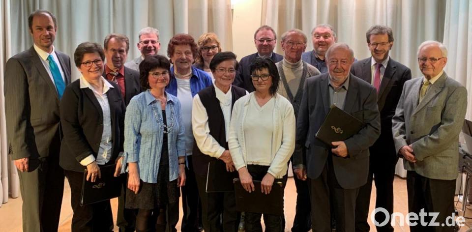 Die Ehrungen von 14 verdienten Mitgliedern des Kirchenchores nahm dessen Leiter Michael Scherm zusammen mit Bruckner und Dekanatskirchenmusiker Berthold Strahl aus Marktredwitz vor. Sie überreichten die Urkunden im Auftrag der Diözese. In seiner Laudatio warb Organist Michael Scherm auch um neue Mitglieder im Kirchenchor, die jederzeit willkommen seien. Mit einer Dankes-Urkunde der Pfarrei wurden ausgezeichnet: Birgitt Bayer (11 Jahre im Kirchenchor), Hans Stich (16 Jahre), Oskar Heinl, Josef König und Erna Raps (jeweils 23 Jahre).