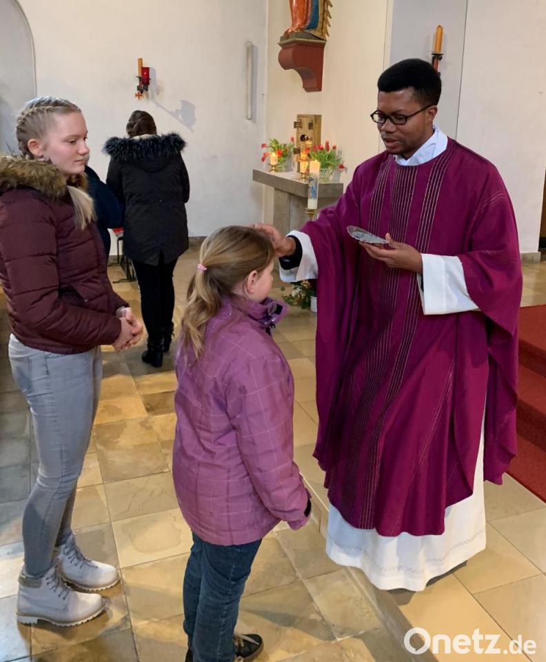 Das närrische Treiben ist zu Ende und die Fastenzeit beginnt. An ihrem Anfang steht der Aschermittwoch mit der Aschenkreuzauflegung. So auch in der katholischen Herz-Jesu-Pfarrgemeinde. Bereits zur Frühmesse kamen viele Gläubige und ließen sich von Kaplan Justin Kishimbe das Aschenkreuz auf die Stirn zeichnen. Der Geistliche sprach dabei die Worte "Bekehrt euch und glaubt an das Evangelium". Die Asche stammt von verbrannten Palmzweigen des Vorjahres.