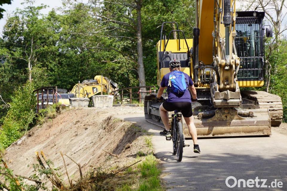 Die letzten Fahrradfahrer und Fußgänger machten der Brücke am Sonntag noch einen Abschiedsbesuch, ungeachtet der Baustellensperrung. Etwas Wehmut klang mit, denn ein Ersatzbauwerk wird es nicht geben. Alleine eine Brücke nur für Fußgänger und Radfahrer würde einen siebenstelligen Betrag erreichen. Dazu kommen die regelmäßigen Aufwendungen für Brückenprüfung und Unterhalt. Noch gefunden werden müssen neue Strecken für die Wanderwege, die über die Brücke führten.