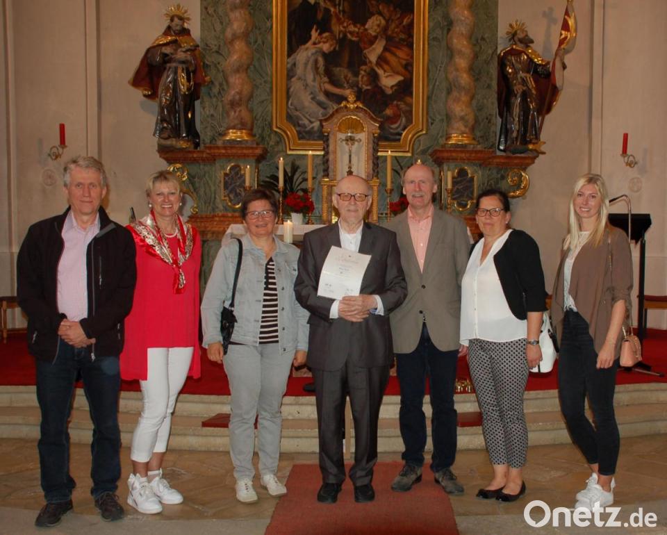 Die Gäste aus der nördlichen Oberpfalz begrüßte Alfons Wurm nach einem dem Gottesdienst in der Filialkirche St. Fidelis, Prüfening, besonders. Sie überreichten dem ehemaligen Seelsorger als Dank und Anerkennung für seine treue Mitgliedschaft und für seine besondere Unterstützung eine Urkunde, verbunden mit einem kleinen Präsent. Alte Erinnerungen und gemeinsame Erlebnisse aus den vier Jahrzehnten tauschten sie bei einem gemeinsamen Mittagessen im Katharinnenhof aus. Eingebunden darin war die gesamte aktive Zeit des allseits beliebten Ehrenpräses als Seelsorger in Immenreuth.