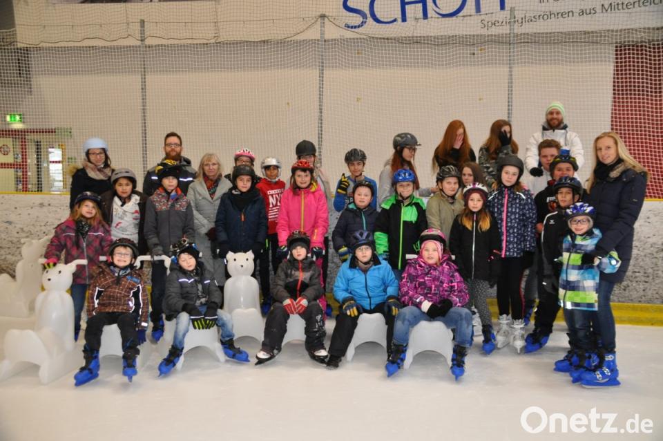 Die Möglichkeit zum Schlittschuhlaufen auf den Nordoberpfälzer Teichen waren in diesem Winter spärlich. Um die Eislaufsaison zu starten, entschied sich das Kollegium des Sonderpädagogischen Förderzentrums mit rund 40 Kindern in die Eissporthalle Mitterteich zu fahren. Schnell ging es mit beiden Kufen auf das Kunsteis. Erfahrene Schlittschuhläufer drehten zu fetziger Musik flotte Runden, durchliefen einen Hütchen-Parcour und spielten Eishockey . Den Anfängern gelangen die ersten Schritte unter Anleitung der Lehrkräfte mit Hilfe von Eislaufhilfen in Form eines Eisbären. Die Kinder hatten viel Spaß und die Zeit verging wie im Flug.