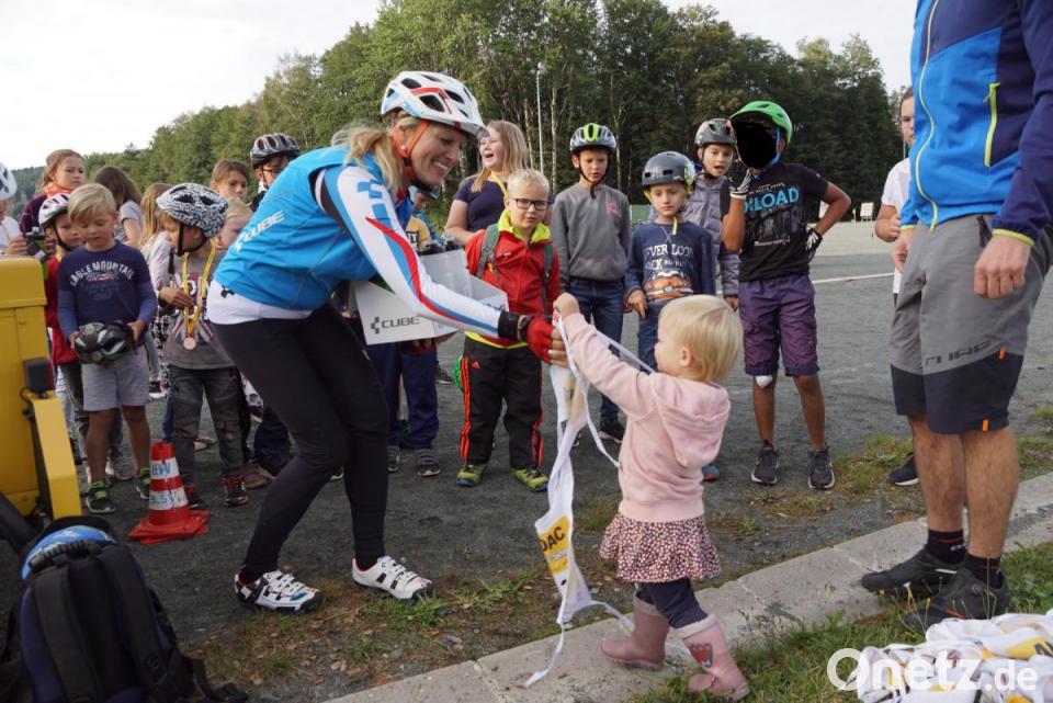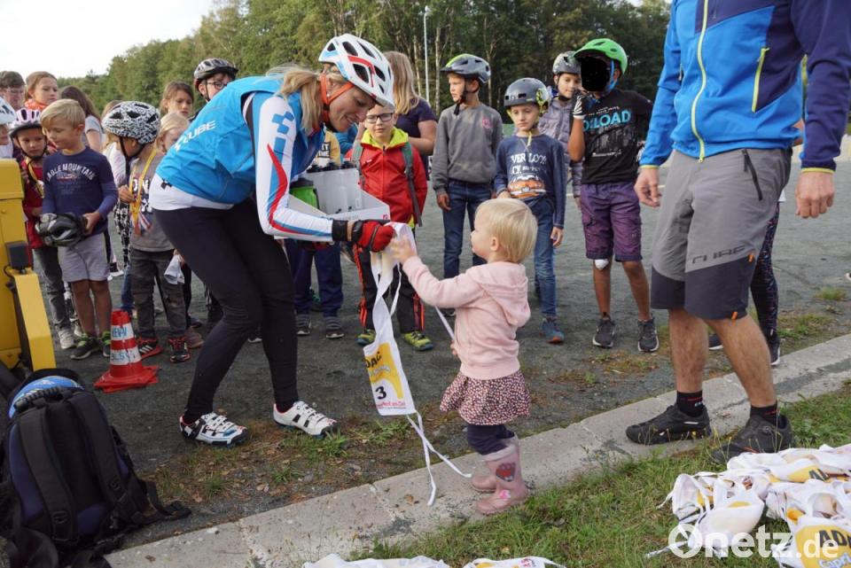 Die Gruppe der Kinder von fünf bis sieben Jahren startete mit dem Wettbewerb und zeigte ihr Können auf dem Parcours. Nach einer Fahrradrundfahrt standen für die Buben und Mädchen Spiele auf dem Sportplatz an. Zwei Gruppen der Kinder von acht bis elf Jahren erkundeten das Flötztal bis zur Kemnather Forstdiensthütte. Die dort eingenommene Brotzeit war mit einem weiteren Regenschauer verbunden, es gab auch Infos über die dortigen Kriegsgeschehnisse im April 1945. Nach der Rückkehr aus der Flötz hieß es für eine Gruppe eine „Ehrenrunde“ durch die Gabellohe einlegen, während die Teilnehmer der anderen Gruppe versuchten, möglichst wenig Minuspunkte im Parcours zu sammeln. Matthias Ehbauer wertete dort die Fahrkünste der Radler. Auf seine Frage bei der Siegerehrung „Hat es euch gefallen und sollen wir es nächstes Jahr wieder machen“, folgte ein unüberhörbares „Ja“. Gleichzeitig bot er für 2021 einen Kindertriathlon an, vorausgesetzt Corona mache keinen Strich durch die Rechnung. Lob ernteten die jungen Radler von Spartenleiterin Monika Kainz bei der Siegerehrung für ihr diszipliniertes Verhalten und die sportlichen Leistungen. Mit der zweijährigen Glücksfee Martha, die aus den Startnummern die Gewinner zog, verteilte sie am Schluss die Cube-Trinkflaschen.