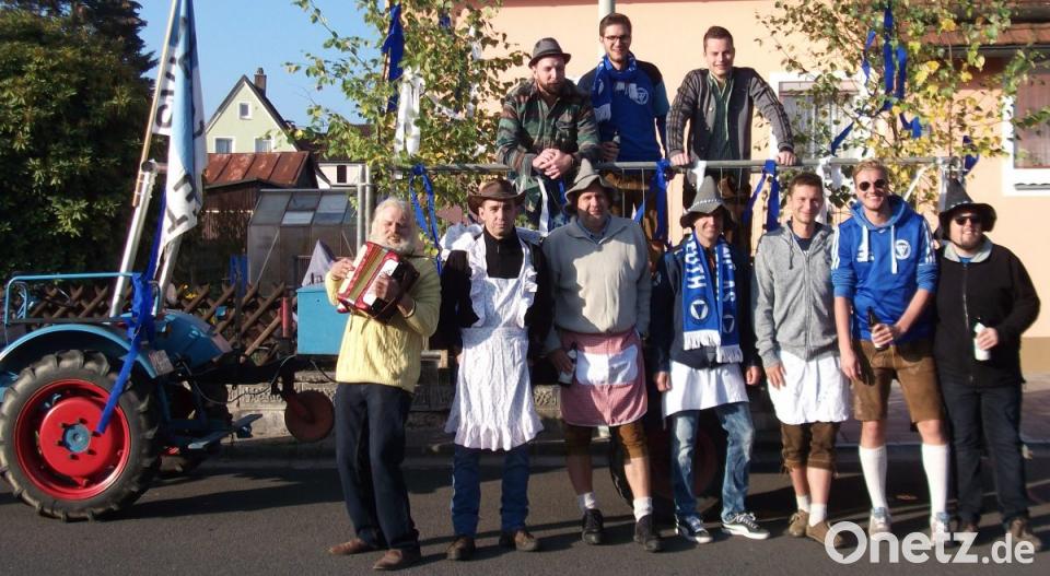 Mit einem bunten Kirchweihwagen, einem Fass Freibier und dem ein oder anderen Gläschen Schnaps zogen die Kirwaburschen des Sportvereins durch den Ort. Mit zweitem Vorsitzenden Stefan König und Beisitzer Reiner Ullmann forderten sie die Bevölkerung am Sonntag auf, mit ihnen die Allerweltskirchweih zu feiern. Unterstützung erhielten die Fußballer wieder von Günter Ohm am Schifferklavier.