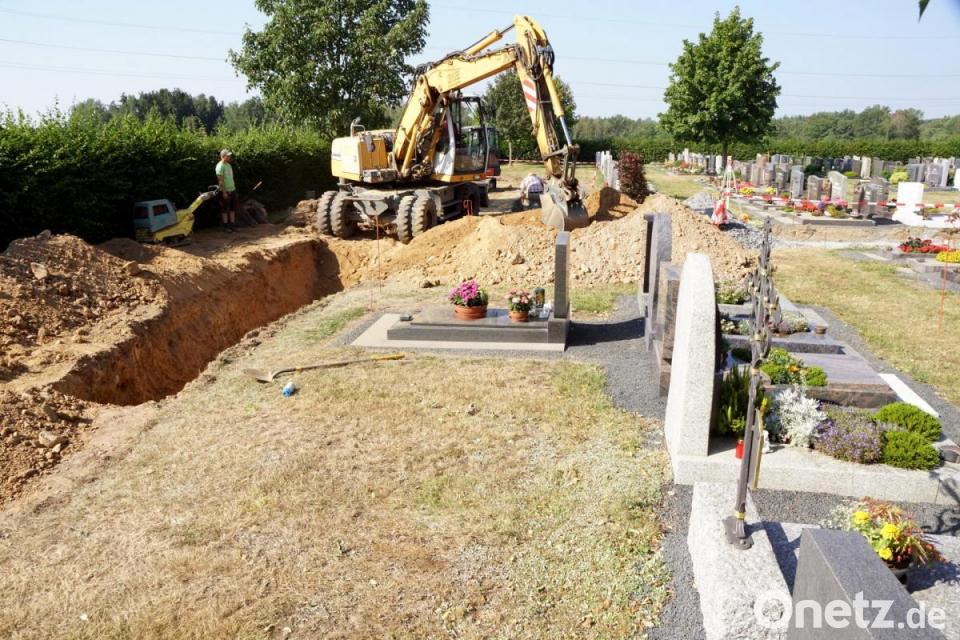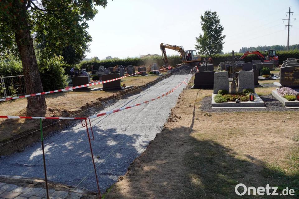 Eine staubige Angelegenheit sind die in dieser Woche begonnenen Erdarbeiten auf dem Friedhof. Vom Friedhofsgebäude zum Nebentor und zur Wasserstelle auf der Südseite werden Gehwege angelegt. Fehlender Niederschlag ließ das Erdreich tief austrocknen. Von Feuchtigkeit und nassem Erdreich, wie man es sonst gewöhnt ist, ist nichts zu erkennen.
