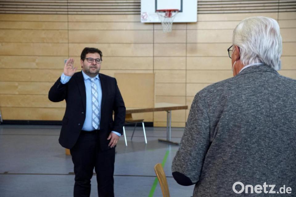Die letzte Amtshandlung von Hecht war es, Kaufmann als Ersten Bürgermeister zu vereidigen, allerdings ohne den üblichen Handschlag - Corona verhinderte dies. Dieser und auch der Handschlag für die neuen vereidigten Gemeinderäte werden zu einem späteren Zeitpunkt nachgeholt.