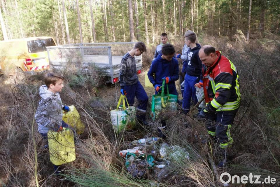 Während die Nebenstraßen in der Gemeinde sauber waren, zeigte sich bei den Durchfahrtsstraßen und auf Parkplätzen ein anderes Bild. Besonders betroffen war das westliche Waldgebiet der Kommune an der Kreisstraße nach Göppmannsbühl. Nicht nur einen Müllhaufen im Gebüsch entsorgten die Kinder auf dem Terrain der Bayerischen Staatsforsten und der Deutschen Bahn. Bereits seit Jahren lagerte dort Unrat, um den sich bisher weder Forst noch Bahn gekümmert hatten. Diese Arbeit haben ihnen nun die Kinder und Jugendlichen abgenommen. Sie hätten sich von ihnen eine Brotzeit verdient, dafür, dass sie eine alte Matratze, einen Toilettendeckel, drei Fahrräder, Berge von Flaschen, Autoreifen Abfallsäcke mit Windeln und jede Menge weiteren Müll auf einen von der Gemeinde bereitgestellten Hänger luden. Kurzerhand in den Wald geworfene Kabelschächte der Bahn wurden vor der dort stehenden Raumzelle abgelagert, mit der Hoffnung, dass diese nicht wieder den Weg zurück in die Natur finden.