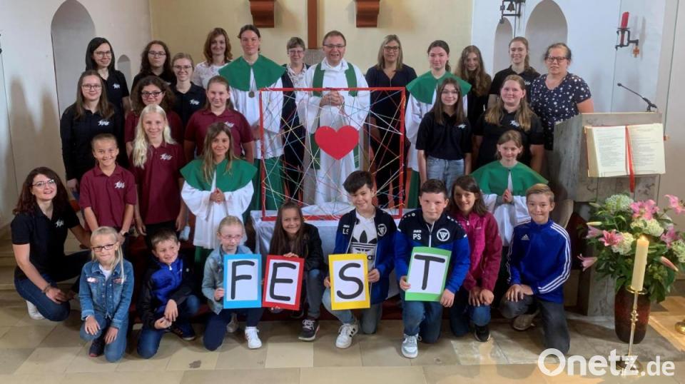 Die Löcher im Netz, die in der Geschichte durch Gier, Neid, Eifersucht oder Egoismus entstanden waren, wurden von Kindern mit bunten Fäden in der Herz-Jesu-Pfarrkirche wieder geschlossen. Auch in den Fürbitten baten viele Eltern sowie Bürgermeister Thomas Kaufmann für die Gemeinde für ein stabiles soziales Miteinander.