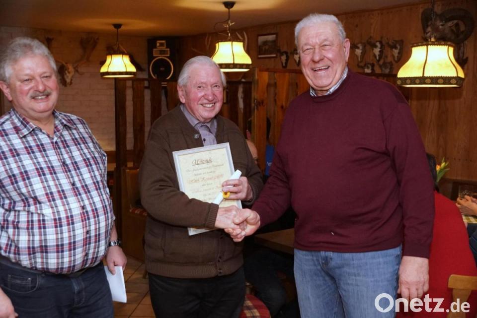 Für seinen Einsatz ehrte ihn die Jagdgenossenschaft am Samstag. Den würdigen Rahmen bot das Jagdessen auf dem Beerhof. Jagdvorsteher Karlheinz Pocker brachte als Zeichen der Dankbarkeit für die großen Verdienste neben einer Urkunde eine "kleine Aufmerksamkeit" mit. Lobend hob er hervor, dass die Kasse und die Bücher der Jagdgenossenschaft tadellos und einwandfrei geführt wurden.