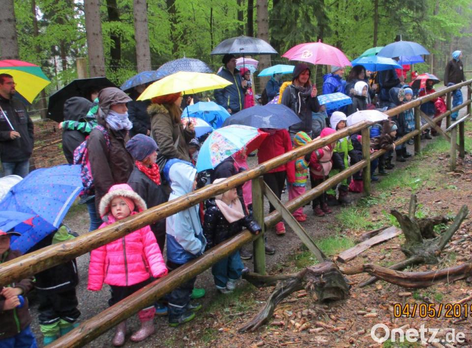 Bei einer Führung erfuhren die Gäste Wissenswertes über die Tiere und sahen ihnen bei der Fütterung zu. Einer der Höhepunkte dabei war es, die Luchse bei ihren akrobatischen Leistungen zu beobachten. Trotz strömendem Regen und kalter Temperaturen ließen sich Eltern und Kinder nicht abschrecken.