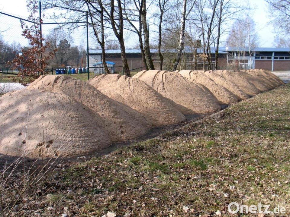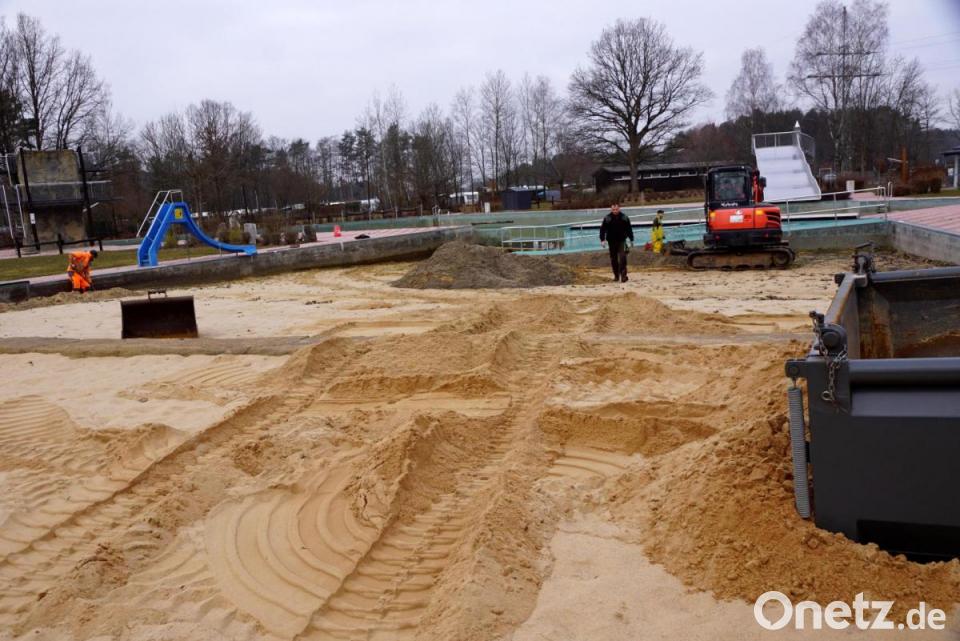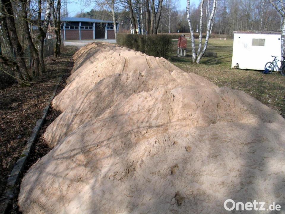 Dazu gehört auch, dass die 40 Tonnen Sand des Sandstrands des Naturerlebnisbads ausgetauscht werden. Auf der alten Asphaltstockbahn des Ferienzentrums, außerhalb des Badgeländes, ist der Spielsand zwischengelagert. Die so entstandene Dünenlandschaft aus Spielsand darf ab Montag für private Zwecke kostenlos abgeholt werden.