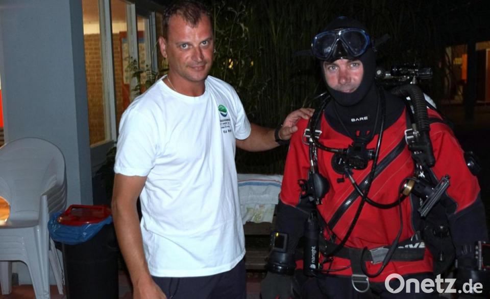Taucher Bill hatte es kurz nach 22 Uhr eilig, seine umfangreiche Ausrüstung anzulegen. Bademeister Kai Wolf half ihm dabei. Seine Aufgabe war es, unter Wasser ständige Sicherheit zu gewährleisten. Acht Mitglieder der Wasserwacht aus den Ortsgruppen Kemnath und Immenreuth taten dies am Beckenrand.