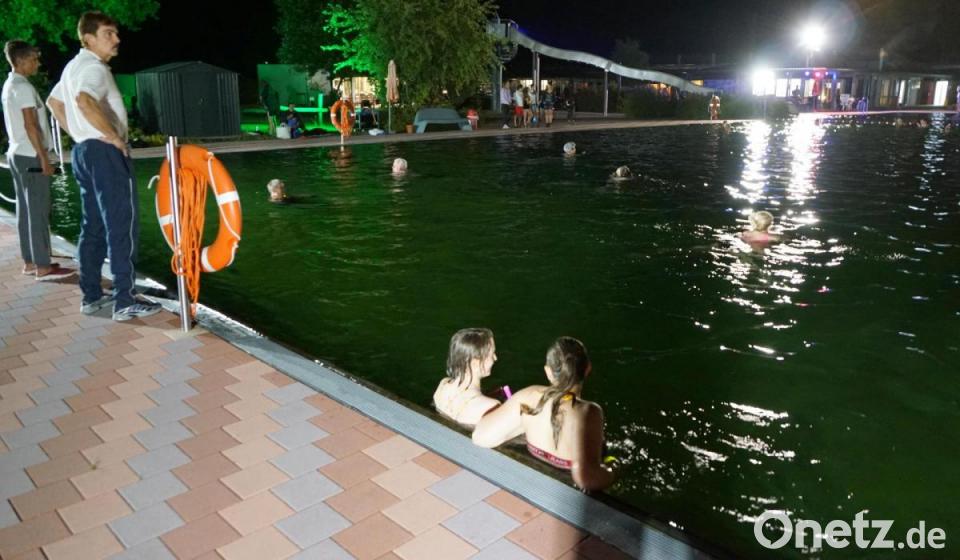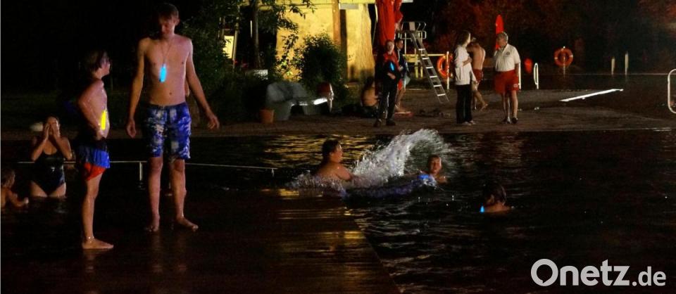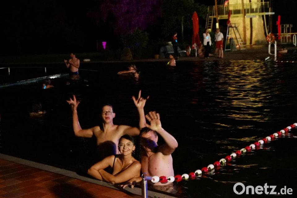 Bereits fünf Minuten nach der nächtlichen Baderöffnung wurden 59 Besucher gezählt. Sie genossen als erste das wohltemperierte Wasser mit 24 Grad, während im Freien das Thermometer „nur“ noch 18 Grad anzeigte. „Super toll“, war von den Teilnehmern im Wasser zu hören. Nicht zu den Schwimmern gehörte Immenreuths Bürgermeister Thomas Kaufmann: Er blieb im Trockenen.