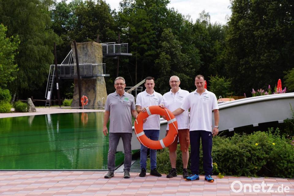 Für die Sicherheit im Bad werden Geschäftsleiter Günther Strobel, Bademeister Kai Wolf sowie die Wasseraufsichten Siegried Jaschke und Daniel Müller neben den Freiwilligen der Wasserwacht sorgen. Zur Wasseraufsicht wird demnächst auch Bettina Dötterl gehören. Das Rettungsschwimmabzeichen in Silber muss sie nur noch ablegen.