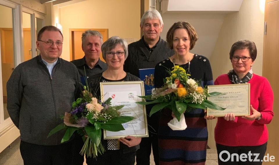 Eine besondere Ehre kam Maria Frauenholz zu teil. Für 24 Jahre in der Kirchenverwaltung erhielt sie von Bruckner eine Urkunde der Bischöflichen Finanzdirektion. Darin dankt ihr Bischof Rudolf Voderholzer für ihr jahrelanges Engagement bei der "Verwaltung der zeitlichen Güter". An Regine Schreyer überreichte der Pfarrer eine Urkunde der Herz-Jesu-Pfarrgemeinde für sechsjährige Mitarbeit. Von ihm erhielten die Lektoren Alfred Popp und Gerhard Kainz eine große Sonntagsbibel als Dankeschön.