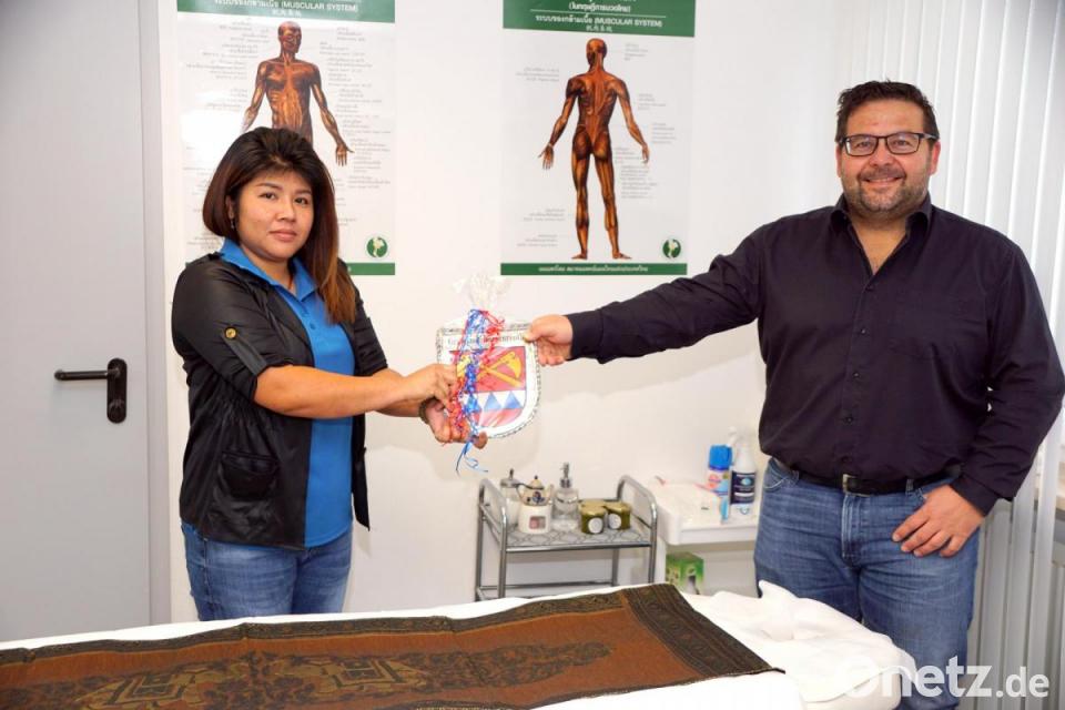 Bürgermeister Thomas Kaufmann sprach am Donnerstag seine Freude über die Eröffnung der Praxis von Aranya Schütz für traditionelle Thai-Massage aus. Aufgrund der Coronaauflagen muss sie aber schon wieder geschlossen werden.