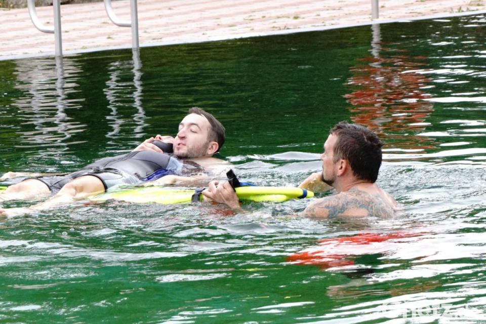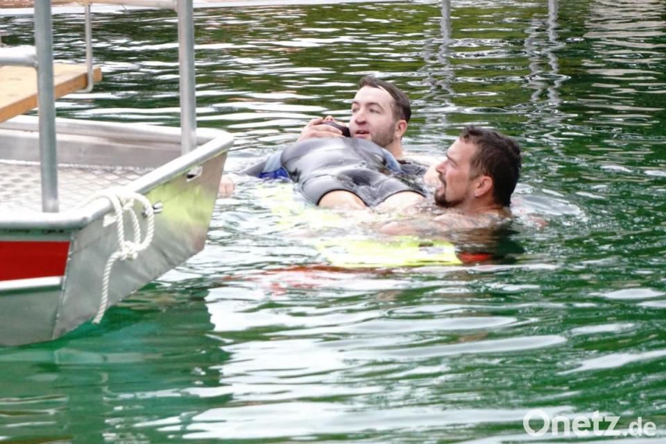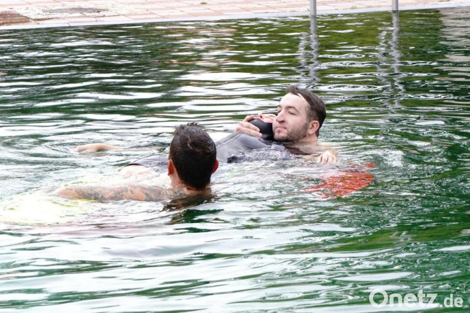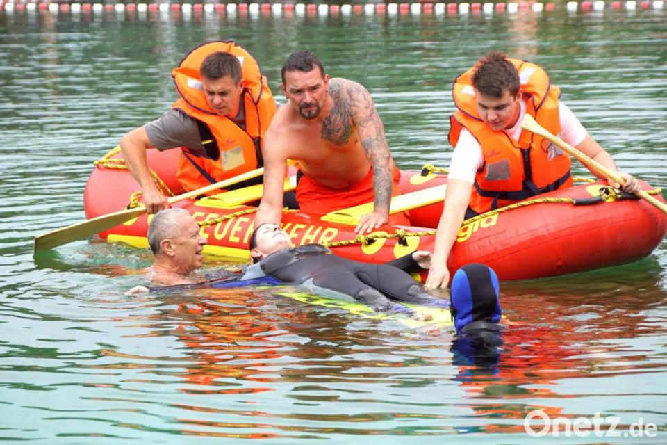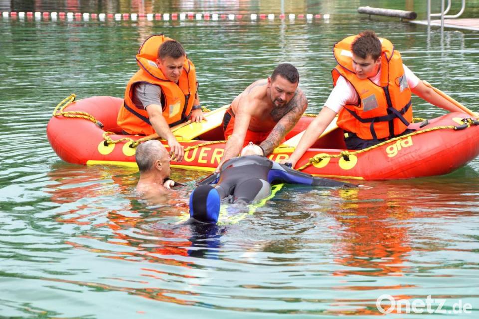 Den Ausbildungstag unterstützte dabei unerwartet die Tauchschule von Bernhard Bauer aus Pressath. Ihren Ausbildungstag brachte sie in die Übung zur Rettung eines Tauchers mit ein.