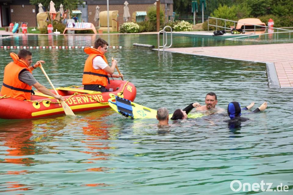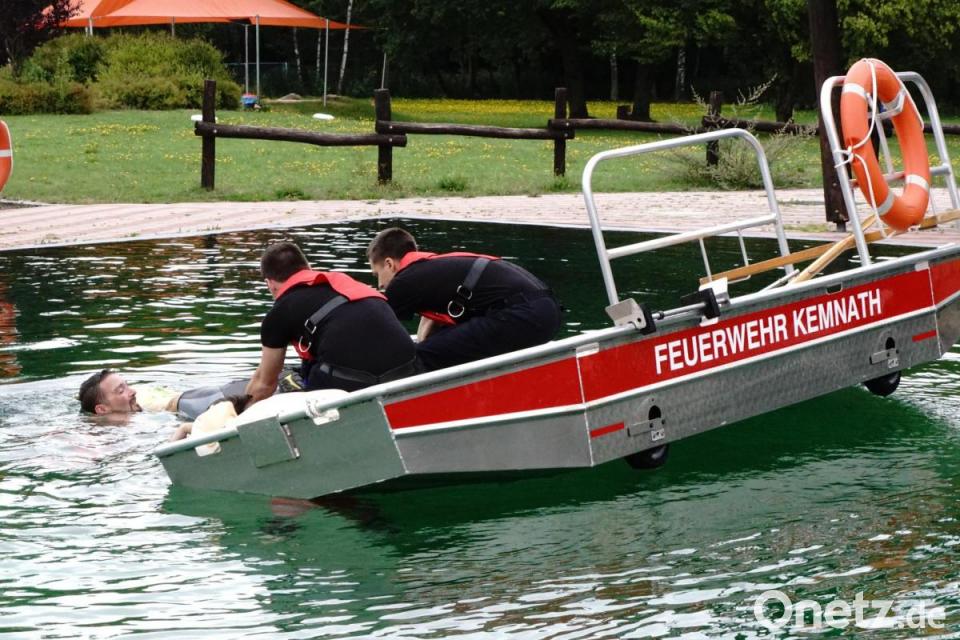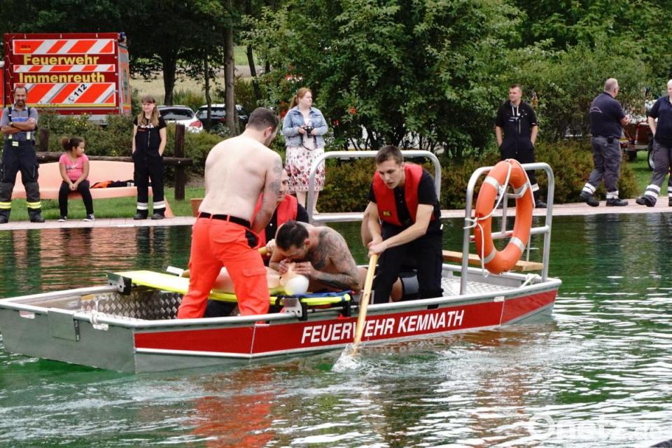 „Schade, dass das Bad geschlossen war“, bedauerte Stefan Binner, Praxisanleiter für Notfallsanitäter. Er hatte den Tag organisiert. Am Vormittag stand die Theorie auf dem Stundenplan und am Nachmittag rückte die Praxis in den Mittelpunkt. "Eine Konkurrenz zur Wasserwacht war der Ausbildungstag nicht", sagte Jörg Müller von der Bereitschaft Armesberg. Vielmehr wurde auf den schnellen Alarmierungsweg der Feuerwehren hingewiesen. Mit ihren Booten sind sie in der Lage, Ertrinkende oder ins Eis Eingebrochene zu retten.