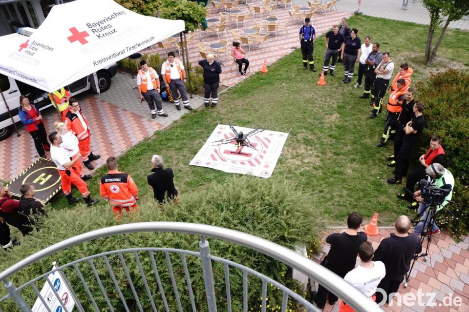 Aus der Luft beobachtete die Fachgruppe „Unmanned Aerial System“ (unbemanntes Flugsystem) des Kreisverbandes die drei geübten Fallbeispiele aus der Luft. Die Rettung eines Schwimmers mit Herzinfarkt, eines Wirbelsäulenverletzten und eines bewusstlosen Tauchers forderten die Kräfte von der Rettung über die Reanimation bis zur Übergabe an den Rettungsdienst.